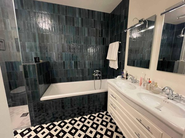 Entrance hall, closed and equipped kitchen with terrace access, living room with fireplace opening onto a beautiful terrace not overlooked, separate guest toilet, shower room with toilet and built-in equipped laundry area, 3 bedrooms, numerous wardrobes, a magnificent master suite with en-suite bathroom with bath, shower and toilet.