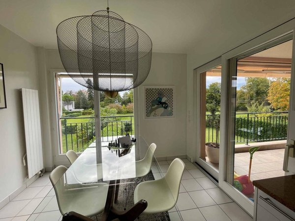 Located on the 1st floor of a small condominium, this 5-room flat offers quality features and is composed as follows: