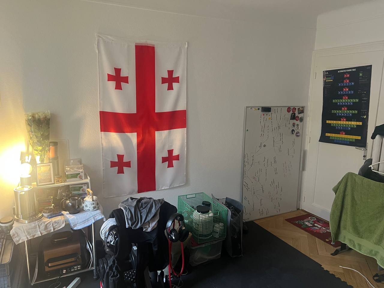 La chambre est spacieuse, très lumineuse et donne directement accès à un balcon non-utilisé par le second colocataire. L'appartement se compose en outre d'un salon commun déjà aménagé ainsi qu'une cuisine et d'une salle de bain (avec baignoire).