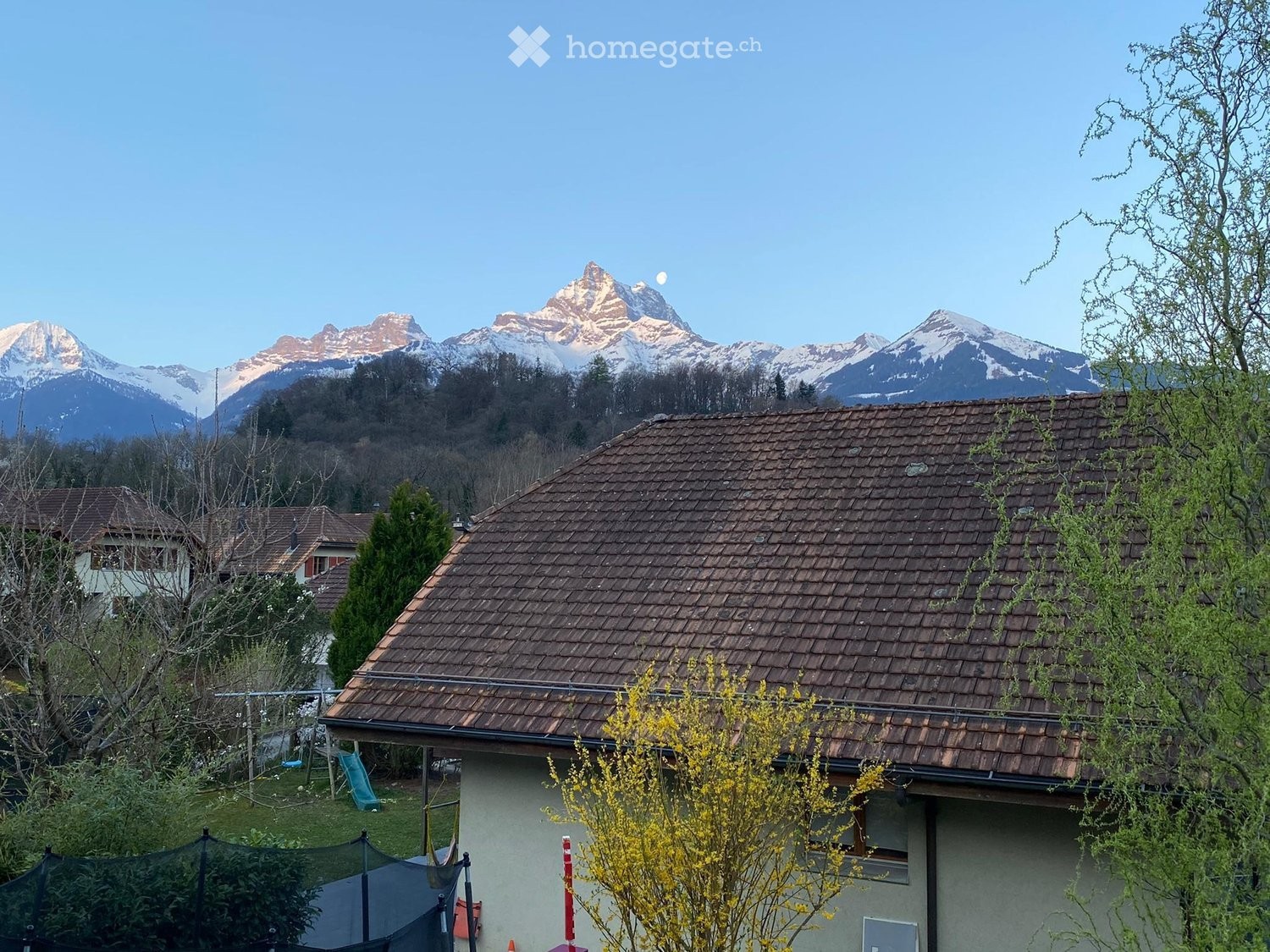 Construite en 2013, elle se trouve dans un quartier calme en périphérie du village de Bex. A 15 min à pied des écoles et des commerces, elle profite d?une magnifique vue sur les Dents du Midi. Une sortie d?autoroute se trouve à environ 3min et le village dispose d?une gare bien desservie.