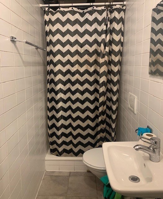 Cette chambre individuelle proche de toutes les commodités et des transports en commun, comprenant un lavabo, une salle de bains et un WC en commun à l'étage.