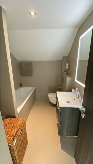 1 salle de bain française avec baignoire, rénovée avec carrelage italien (2023)