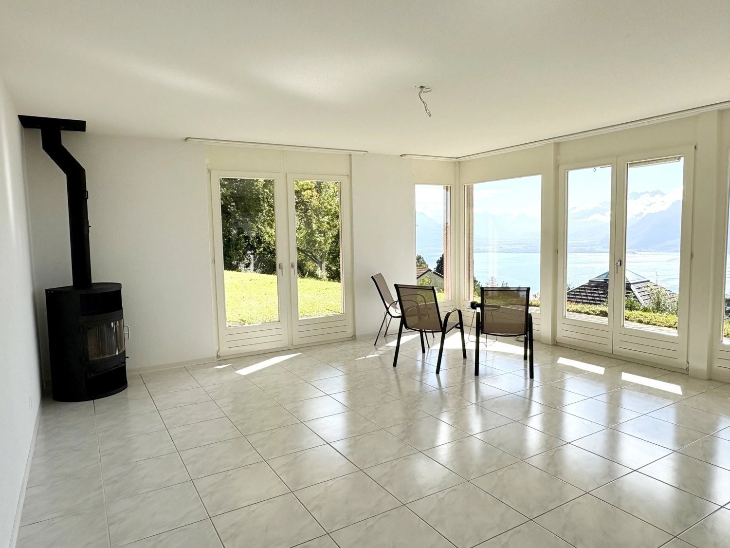 Dans un quartier calme et résidentiel au Mont-Pèlerin, appartement de 4 pièces en rez-de-jardin, composé comme suit :