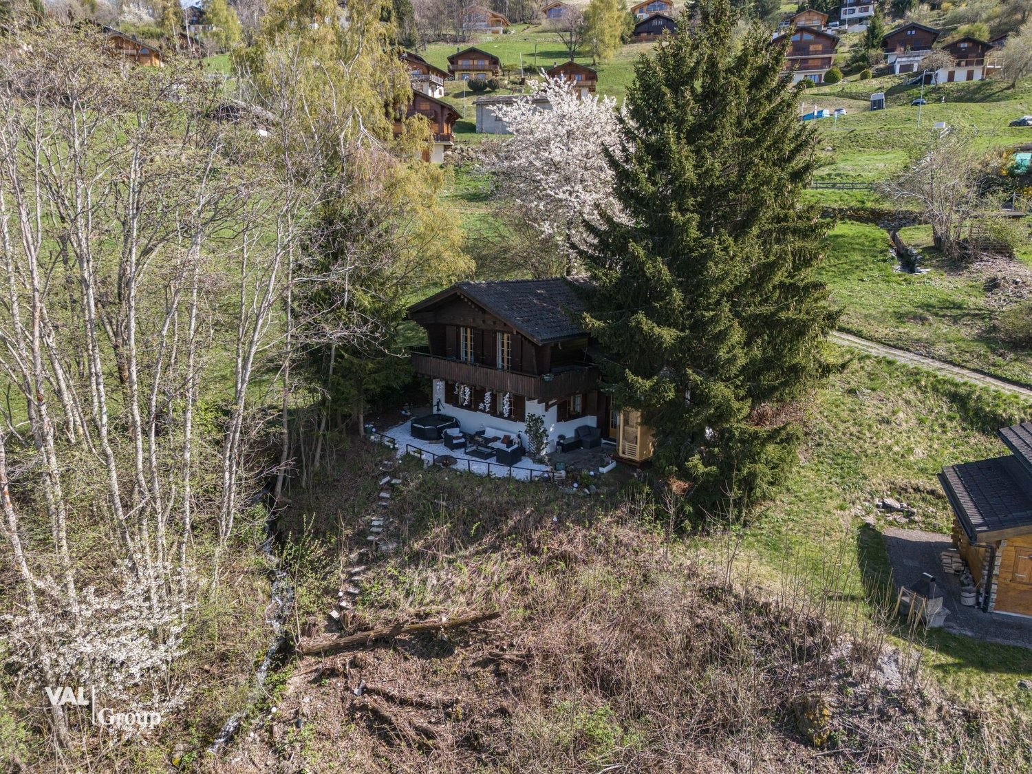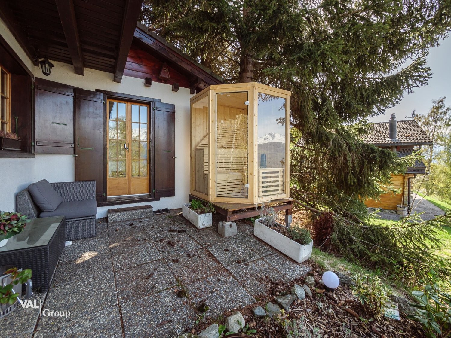 Le chalet est entouré d'une grande parcelle qui offre beaucoup d'espace pour se détendre en extérieur. Un jacuzzi et une sauna sont également disponibles devant le chalet, parfaits pour se détendre après une journée active ou simplement pour profiter d'un moment de calme.