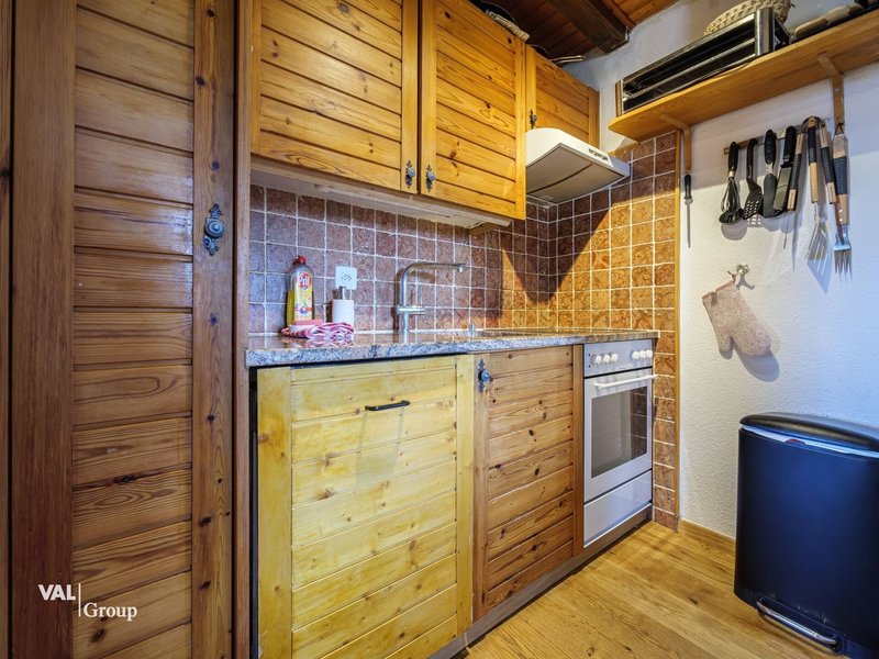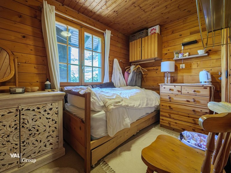 Le chalet dispose d'un espace de vie accueillant au premier étage, où le salon, la salle à manger et la cuisine se partagent un espace ouvert, lumineux grâce à de grandes fenêtres qui offrent des vues spectaculaires sur les alentours. La cuisine est bien équipée, prête à accueillir vos préparations culinaires, tandis que la salle à manger est l'endroit idéal pour des repas en famille ou entre amis. Un petit réduit offre un espace de rangement pratique, et un WC séparé est également disponible à cet étage.