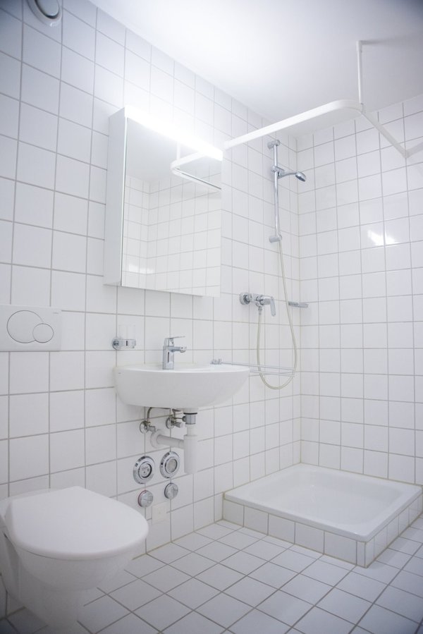 Il dispose également d'une spacieuse chambre ainsi que d'une salle de bains équipée des aménagements pour la pose d'une colonne de lavage.