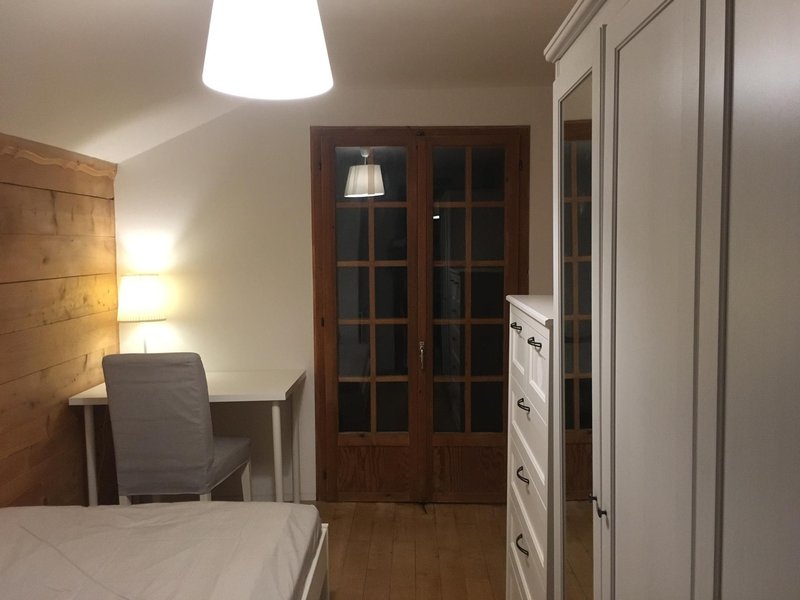 Belle chambre entièrement meublée. Dans un chalet strictement non-fumeur en colocation entre sympas colocataires. Le chalet se situe à env. 20 minutes de Nyon et de Gland, à 35 minutes de Genève et à 40 minutes de Lausanne. Grande SDB avec baignoire et cabine de douche. 2 wc's séparés . Loyer net 540 + 180 de charges et frais colocation (chauffage, eau, électricité CO2 neutre y compris chauffage électrique et internet) donc 720 tout compris. 1 mois de caution. Disponible dès début mars.