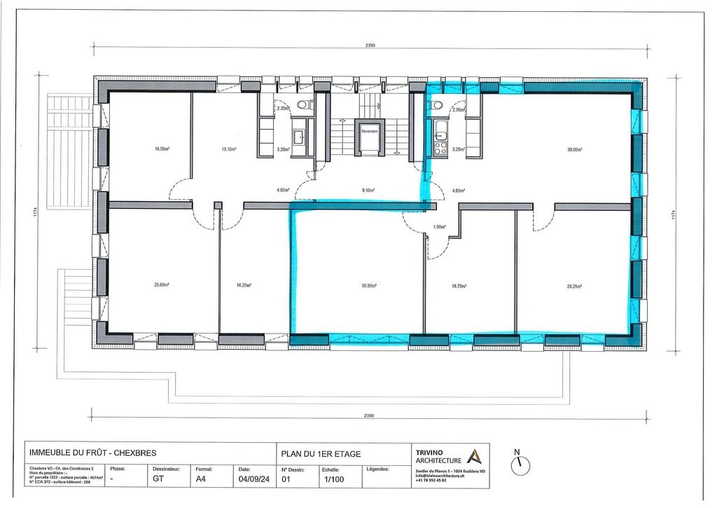 Bureaux d'environ 117 m2 au 1er étage avec cuisine et WC privatif :