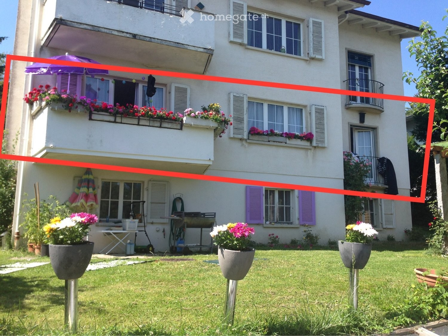L appartement dispose d un balcon privé, dun jardin à disposition des locataires, dune cave et un garage.