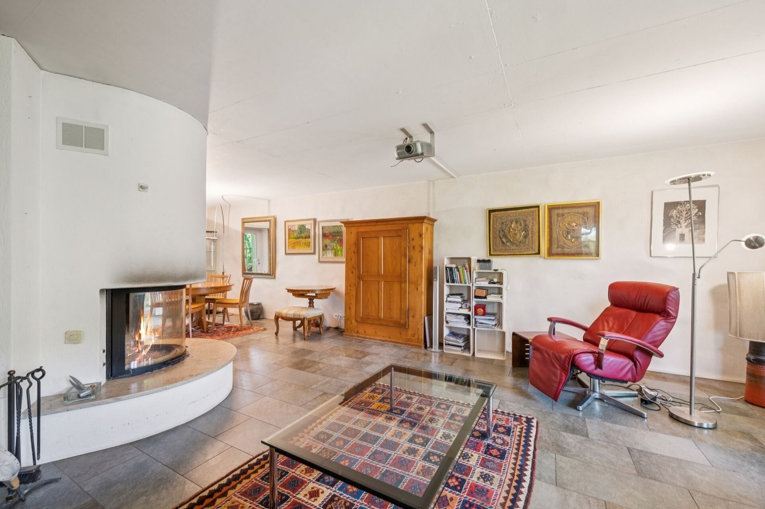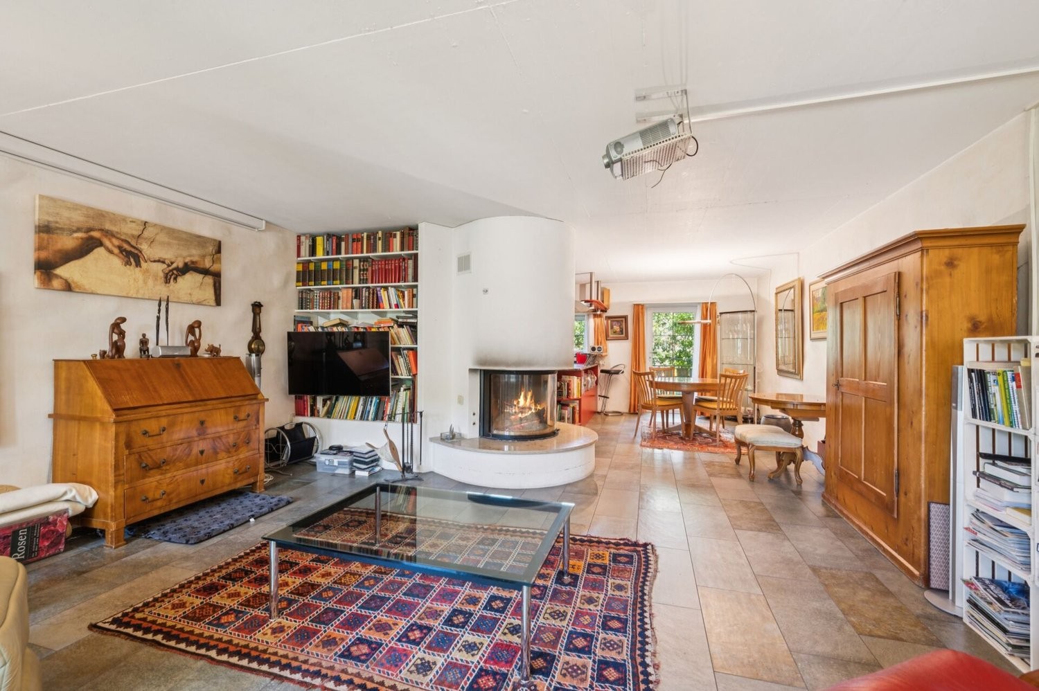 Lichtdurchfluteter Wohnbereich mit Cheminée und Balkon