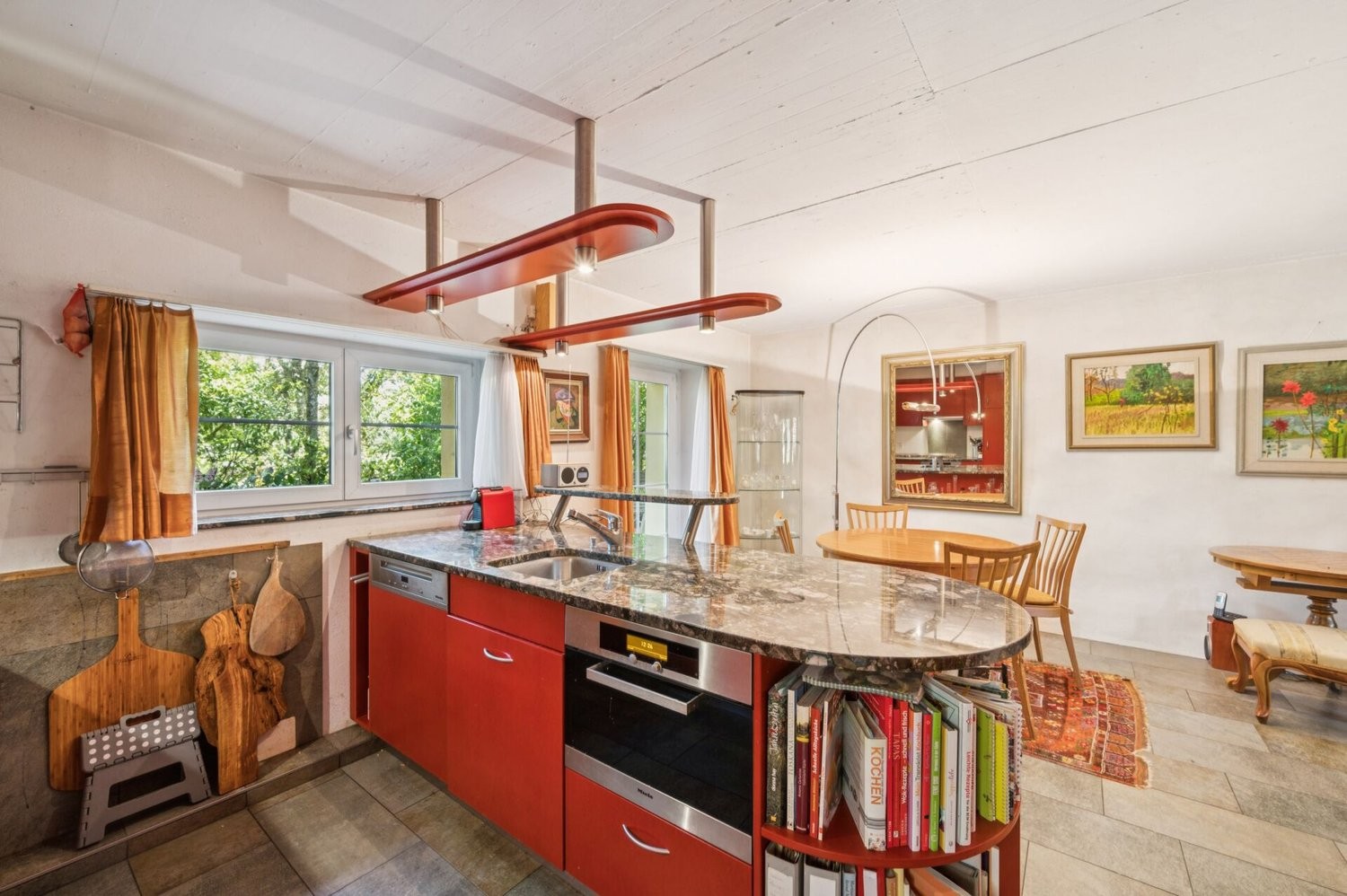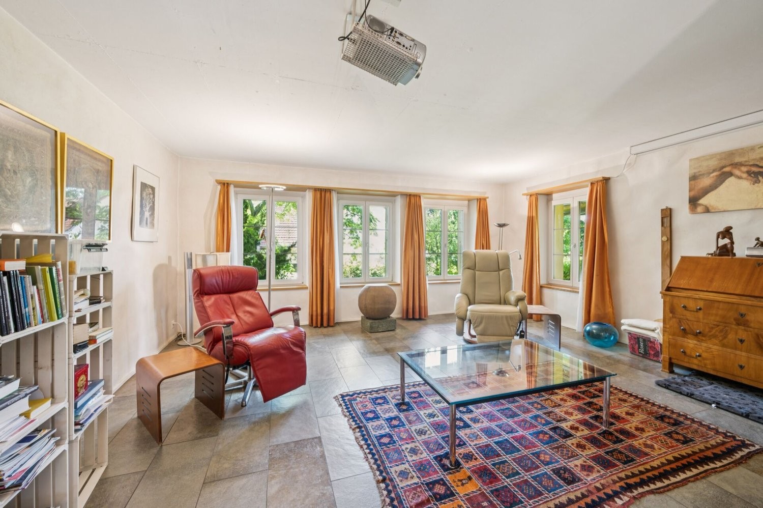 Diese charmante Liegenschaft befindet sich in ruhiger Lage mit privater Zufahrt auf einem rund 1'100?m² grossen Grundstück. Das freistehende Haus überzeugt mit einer stimmigen Kombination aus historischem Charakter und stilvollen, modernen Elementen. Die durchdachte Raumaufteilung bietet vielseitige Nutzungsmöglichkeiten auf mehreren Ebenen. Der lichtdurchflutete Wohnbereich im Obergeschoss mit gemütlichem Cheminée, einladendem Essplatz und hochwertig ausgestatteter Küche mit markanten roten Fronten schafft eine wohnliche Atmosphäre mit Blick ins Grüne. Im Dachgeschoss befinden sich zwei Schlafzimmer mit Dachschrägen, eines davon mit eigenem Bad. Praktische Nebenräume im Erdgeschoss sowie ein ausbaufähiger Estrich und ein gepflegter Garten unterstreichen das Potenzial dieser besonderen Immobilie, ideal für Menschen mit Liebe zum Authentischen und Sinn für Gestaltung.