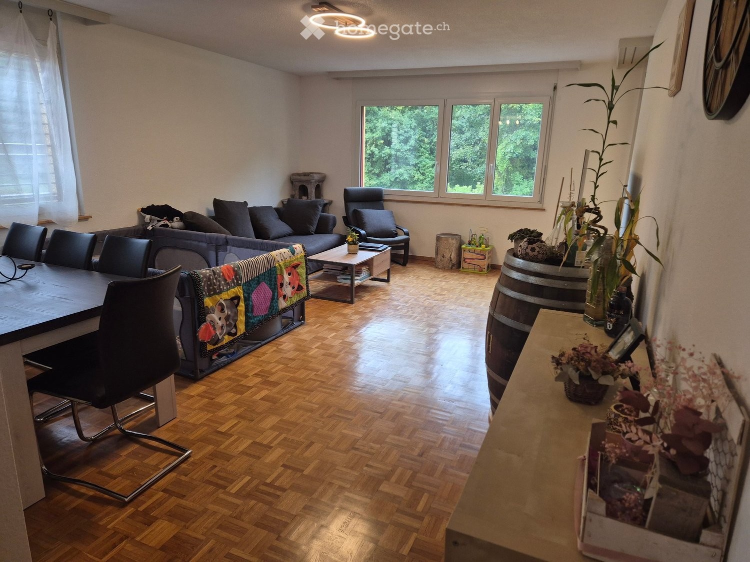 Proximité immédiate avec la forêt et la rivière Areuse, des transports publics (tram, bus, accès autoroute) et des commodités.
