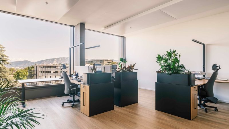 The Kyoto building stands as a prominent feature within Green Village, an ambitious real estate development providing over 14,000 m² of premium office space in the heart of international Geneva. With 310 m² of flexible workspaces nestled in this verdant haven, the complex creates an integrated campus where offices, residences, retail spaces, and common areas coexist harmoniously.