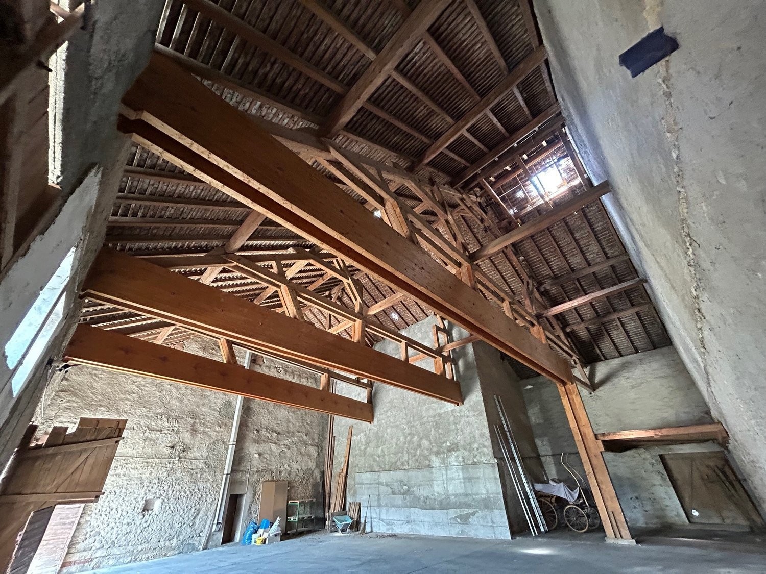 Structure : Plafond en bois avec poutres apparentes et murs en pierre