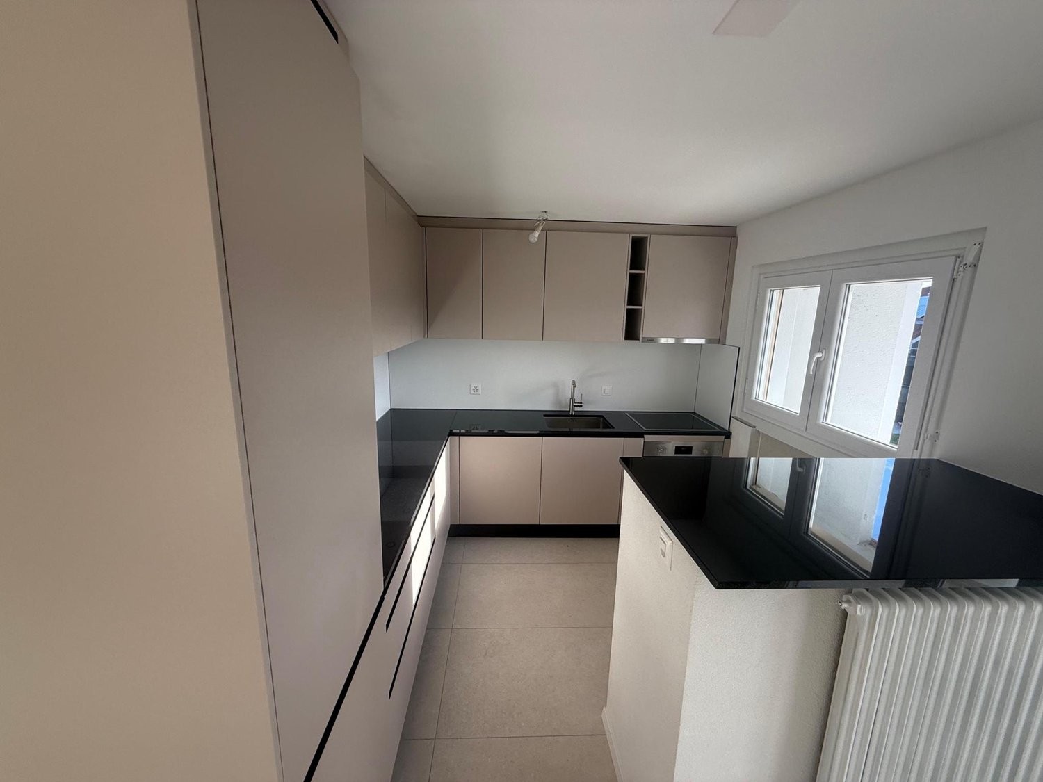 Situé au dernier étage d'un petit immeuble bien entretenu, cet appartement de 3.5 pièces (env. 85 m²) entièrement rénové séduit par sa luminosité et son confort moderne.