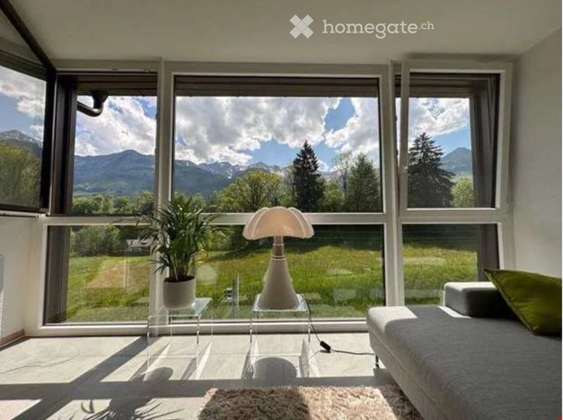 Appartement de 2,5 pièces avec une jolie vue sur les montagnes. 1320 CHF charges et place de parce extérieure comprises.