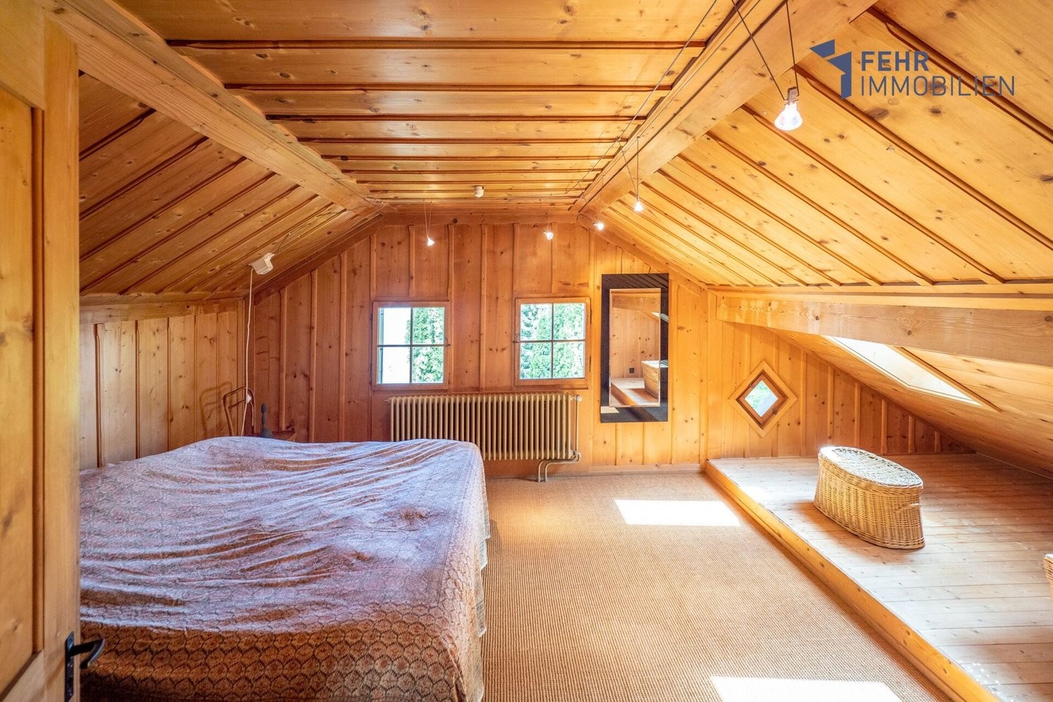 Im Dachgeschoss lädt ein grosszügiges, gemütliches Dachzimmer zum Träumen ein - ein wunderbarer Rückzugsort. Dachflächenfenster sorgen für viel Tageslicht, während Südfenster eine spektakuläre Panoramasicht bis zur Alpenkette eröffnen.
