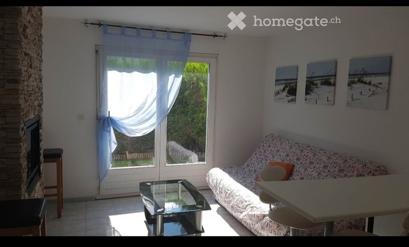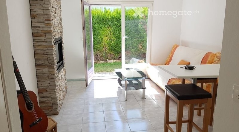 Joli studio meublé, piece à vivre avec cachet, cheminée électrique de salon, petit jardin, salle de bain avec douche pièce supplémentaire comme bureau, fitness ... Place de parc, 10mn de l'arrêt de bus, 1.5km de Martigny.