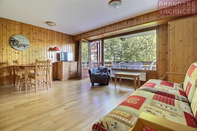 Réparti sur deux niveaux, l'appartement se compose au rez-inférieur d'un spacieux séjour lumineux, équipé d'un canapé-lit et donnant accès à un balcon avec vue dégagée sur les montagnes environnantes. La cuisine, entièrement rénovée, est moderne et parfaitement fonctionnelle. Une salle de bain avec baignoire complète ce niveau.