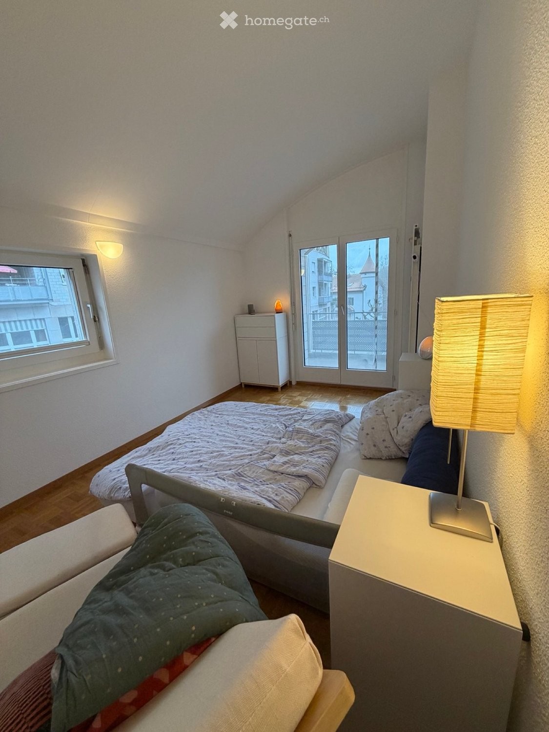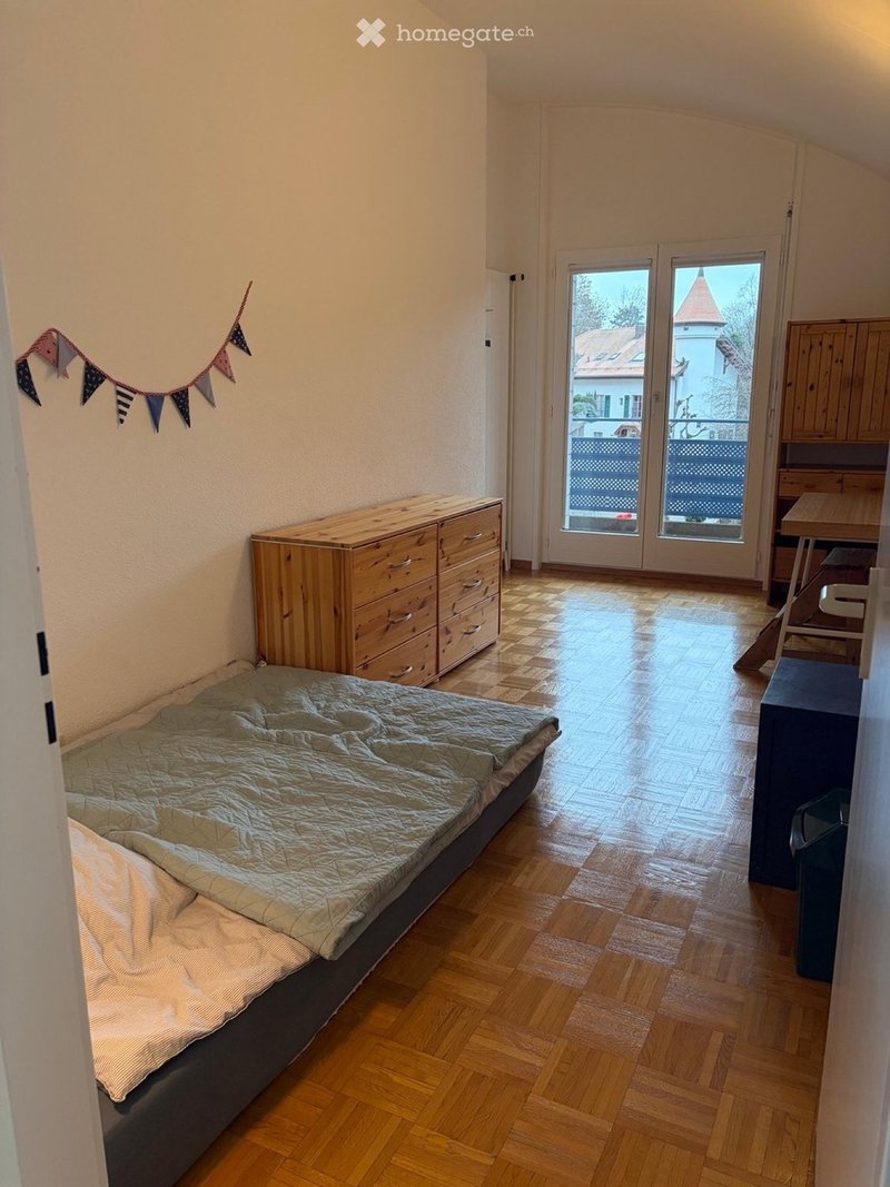 Lease-takeover for April 1, 2026: 4.5 room apartment in the center of Nyon. Three bedrooms, two of which have access to the balcony, large living room, large kitchen, two bathrooms and two large balconies. One bathroom with bathtub, one with shower. Equipped kitchen with washing machine and dryer. Second floor. Entrance with large wardrobe, large corridor with two wardrobes, one cellar. Possibility to rent a parking space in the basement (not included). The apartment is located right in the center of Nyon but in a quiet neighborhood with very little traffic and with a view towards the greenery. Distances: Shopping < 1 minute walk, Nyon train station 3 minutes walk, lake 8 minutes walk. Visits on demand 13. & 14.02.