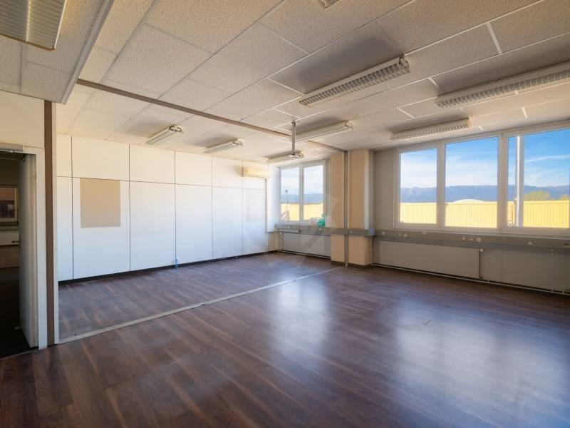 Située au c?ur de la zone industrielle de Plan-les-Ouates (ZIPLO), cette surface de 208 m² , au 1er étage d'un immeuble moderne de trois niveaux, bénéficie d'une belle luminosité et d'une orientation côté Jura.
