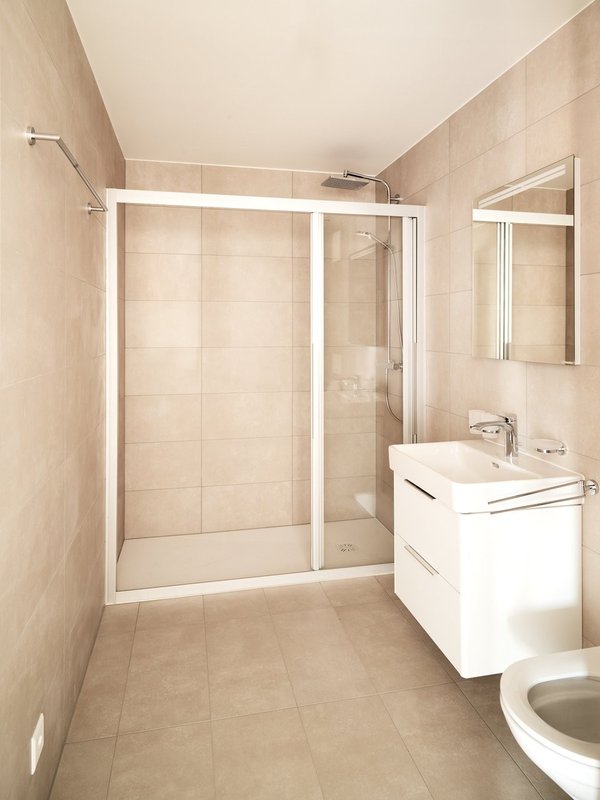 Deux salles de bain, dont une avec douche et l'autre avec baignoire et branchement pour LL-SL