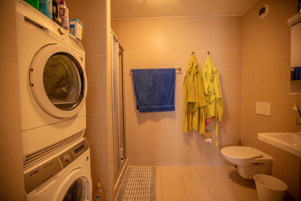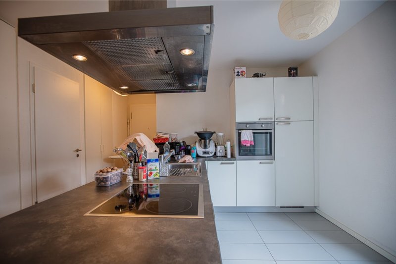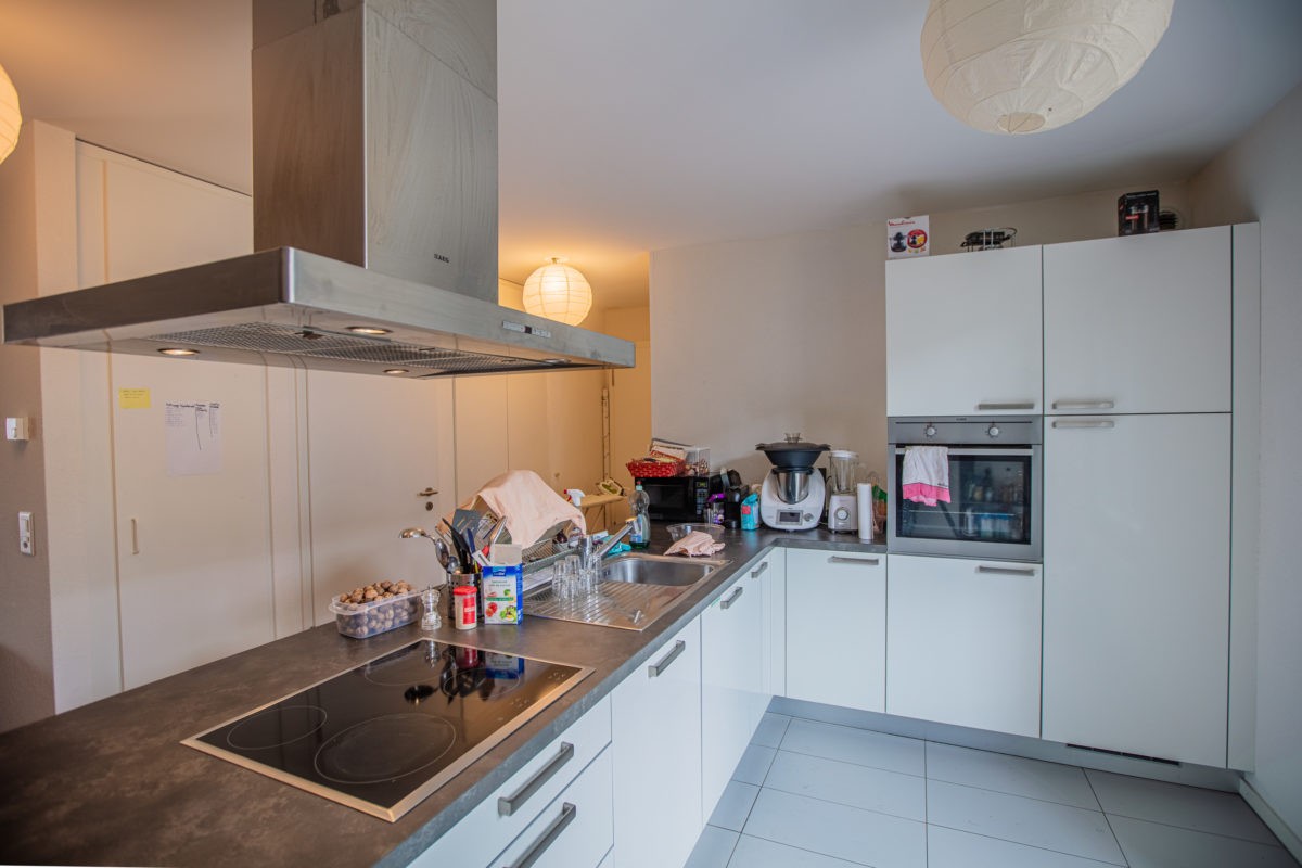 L'appartement dispose d'une cuisine ouverte conviviale, idéale pour la vie en colocation. Un lave-linge et un sèche-linge sont également à disposition dans le logement.