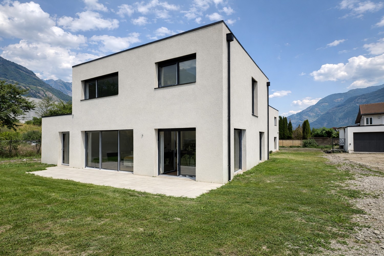 Située dans un quartier résidentiel calme et familial à Saxon, cette maison individuelle contemporaine de 5.5 pièces, construite en 2024, offre un cadre de vie idéal entre Martigny et Sion.