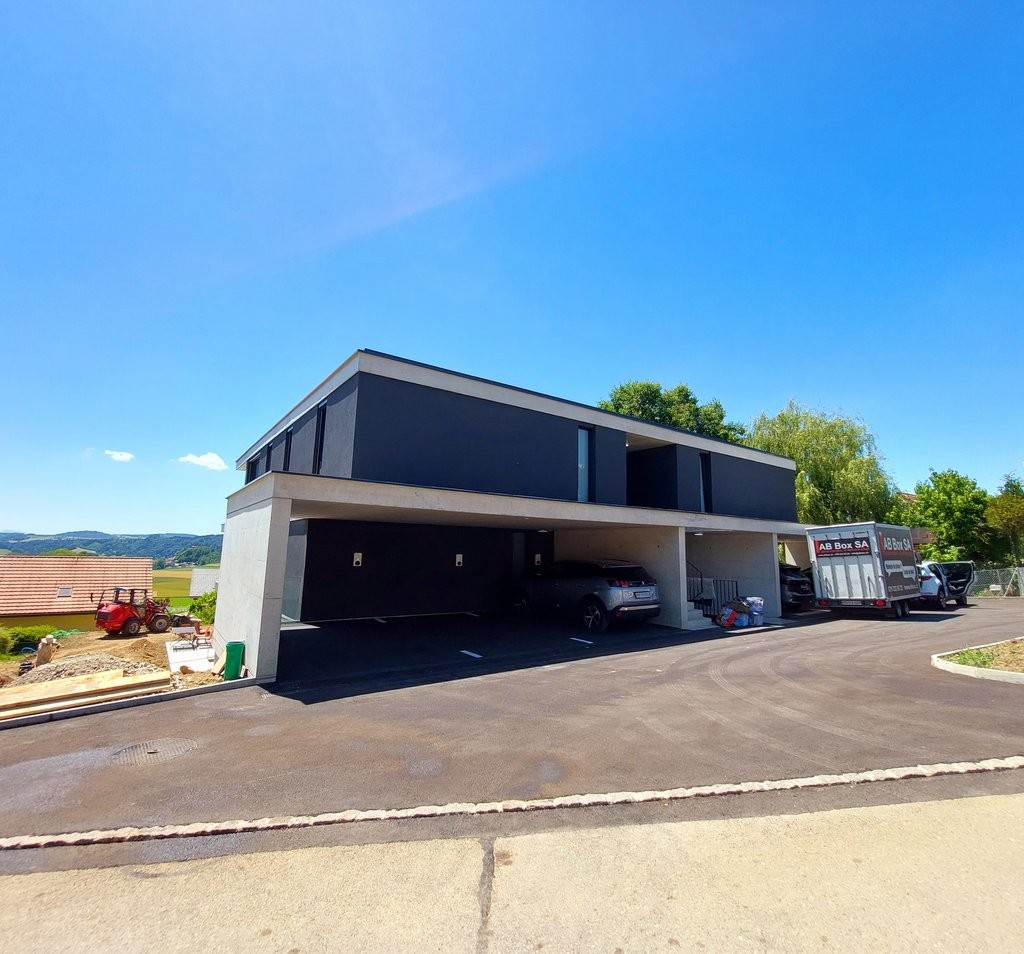 Une place de parking couverte à Frs. 100.-/mois avec branchement pour véhicule électrique et une place de parking extérieur à Frs. 50.-/mois.