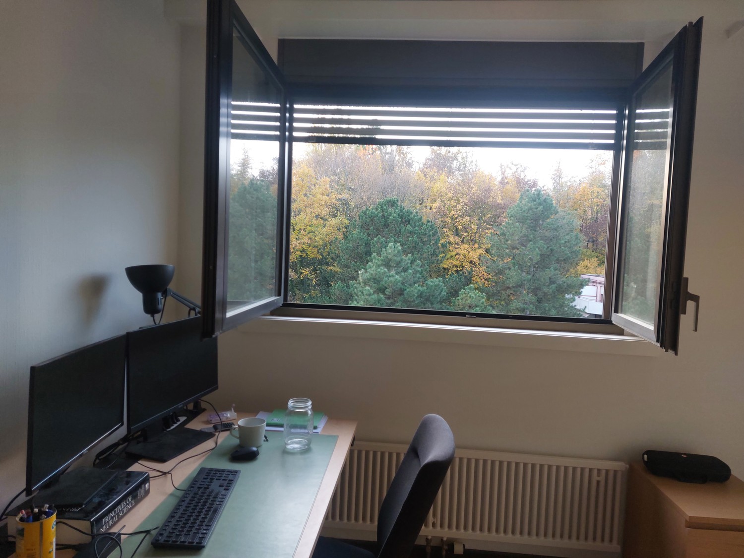 Furnished, with two large adjustable standing desks