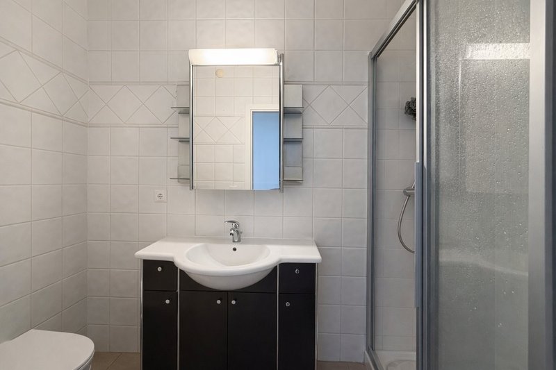 Une salle de bains avec WC