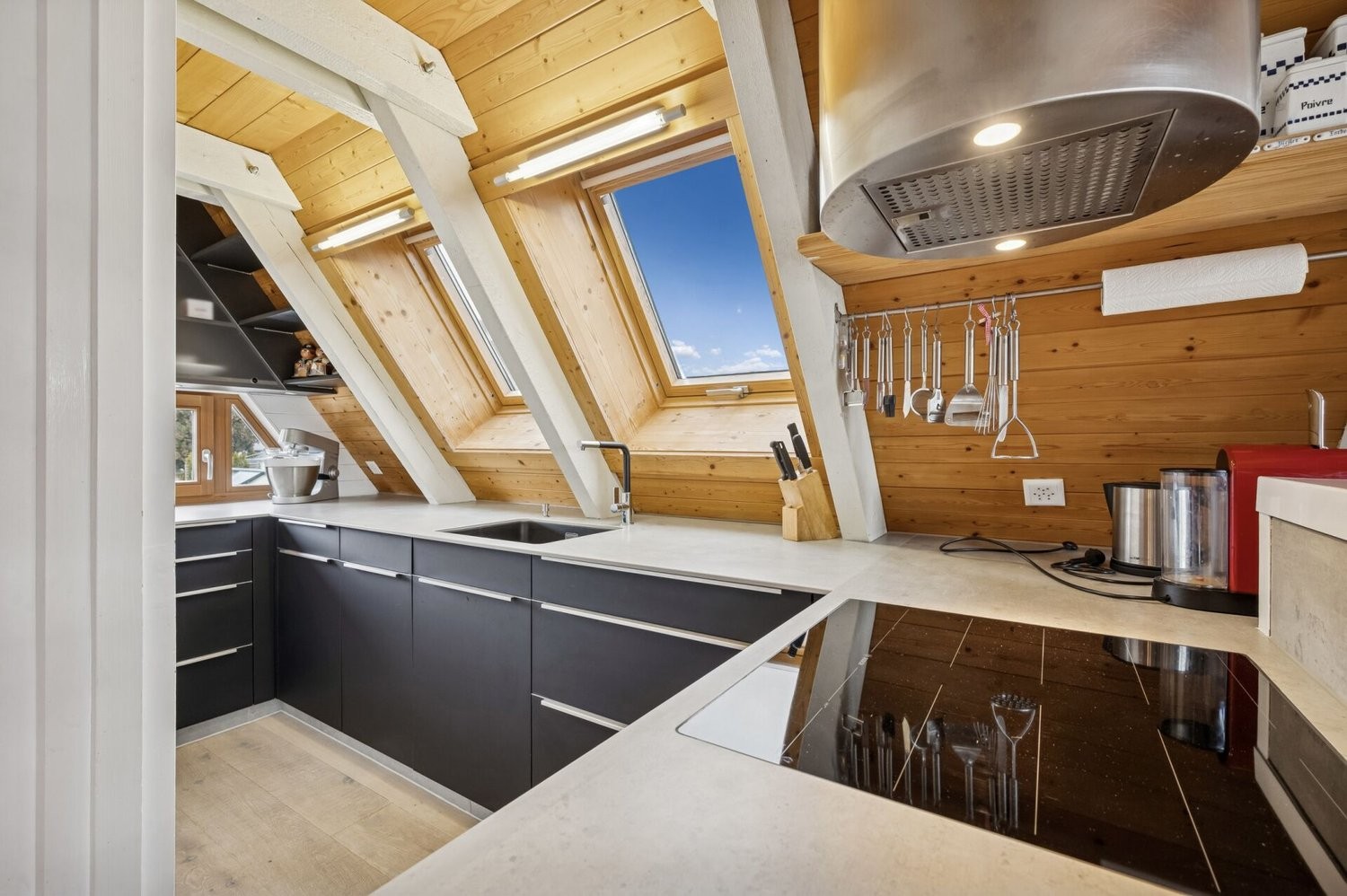Die 1971 erbaute Liegenschaft wurde laufend erneuert und präsentiert sich heute in einem gepflegten, individuellen Stil. Auf rund 85 m² Wohnfläche bietet sie ein helles, offenes Raumkonzept mit viel Holz, grossen Fensterflächen und einer charmanten Galerie. Der Hauptwohnbereich im Obergeschoss umfasst einen lichtdurchfluteten Wohn- und Essbereich mit stilvollem Cheminée und Zugang zur überdachten Terrasse. Von hier geniessen Sie einen freien Blick über die Dächer der Nachbarschaft bis hin zum See. Die moderne Küche ist mit hochwertigen Geräten, Induktionskochfeld und Keramikarbeitsfläche ausgestattet und fügt sich harmonisch in das warme Holzambiente ein. Zwei Zimmer, ein stilvolles Badezimmer mit Dusche sowie praktische Reduits gewähren Komfort und Funktionalität.