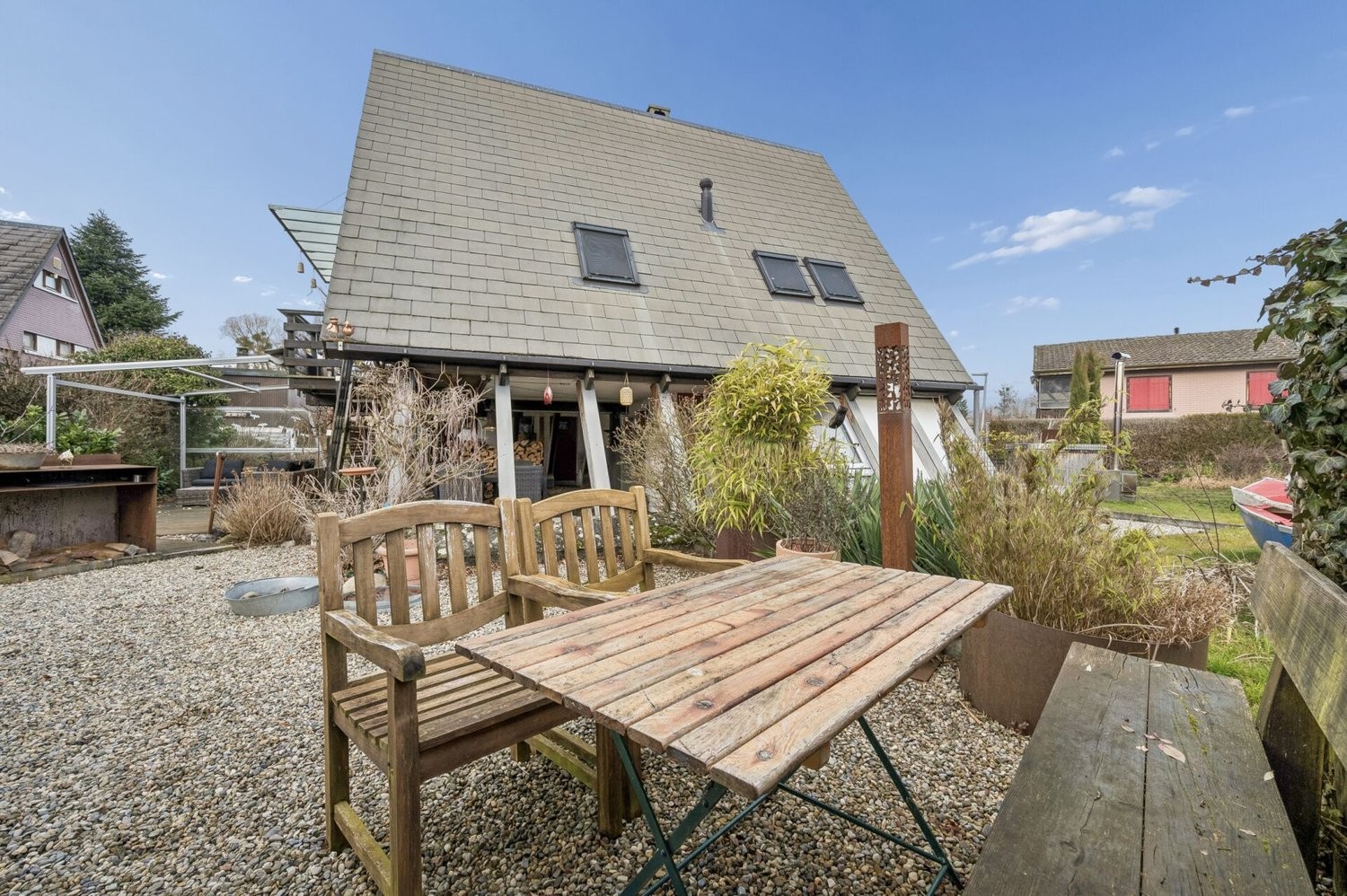 Une maison unique avec un caractère de vacances et une ambiance de bien-être. Idéal pour tous ceux qui apprécient la proximité de l'eau, le calme de la nature et le mode de vie particulier du lac de Neuchâtel.