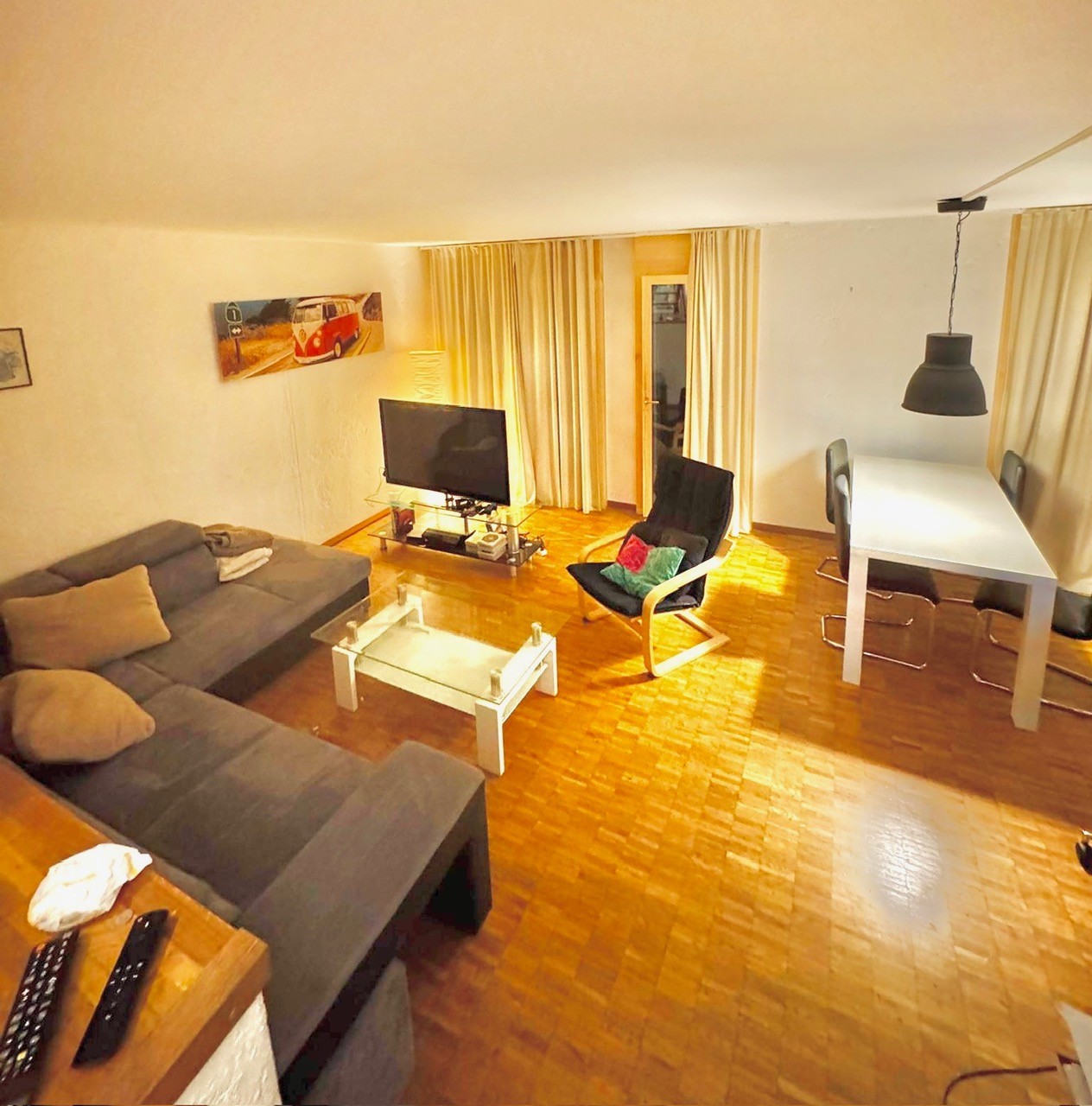 I'm Kevin, 34 years old and young professional. I grew up internationally, am always open to new things and have been living here for a while already. The neighbourhood is quiet with lots of greenery around. The large loft apartment has everything you need like an open kitchen, a large living room with terrace and is very spacious. We have a bus stop here from which you can reach Zurich main station within 20 minutes.