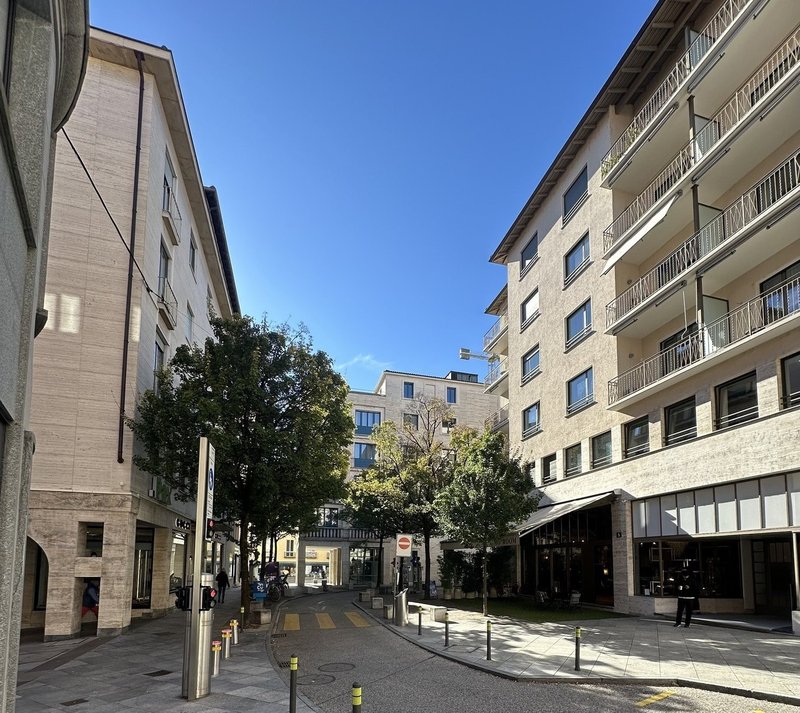 Nel cuore della città, all’interno della zona pedonale di Lugano, si affitta centralissimo e luminoso appartamento completamente arredato.