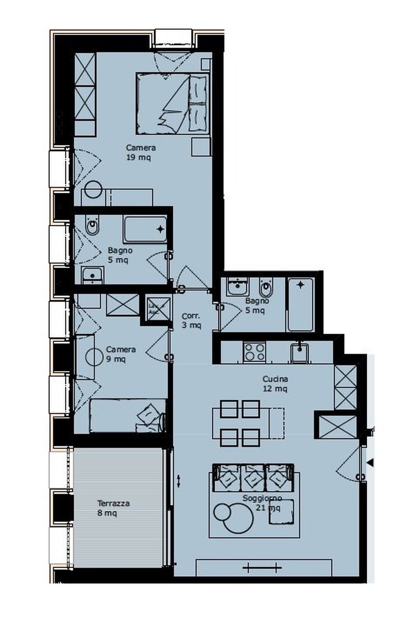 Le spese accessorie comprendono: Wi-Fi alla velocità di 200 Mbs, acqua calda e fredda, riscaldamento a serpentina, raffrescamento fancoil con termostato ambientale ed elettricità.