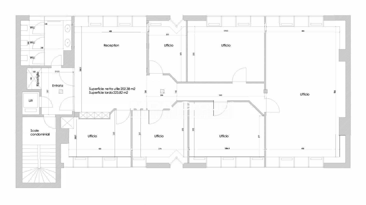 Si tratta di uno spazio funzionale e facilmente modulabile in base alle esigenze della vostra attività. L’ampio ingresso permette di realizzare una reception accogliente, mentre la distribuzione interna si presta a una suddivisione flessibile degli ambienti.