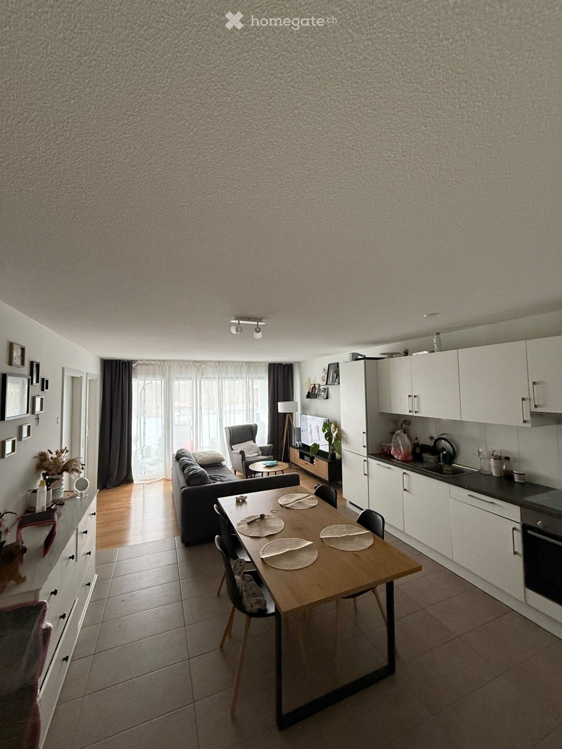 Grand séjour lumineux avec cuisine ouverte