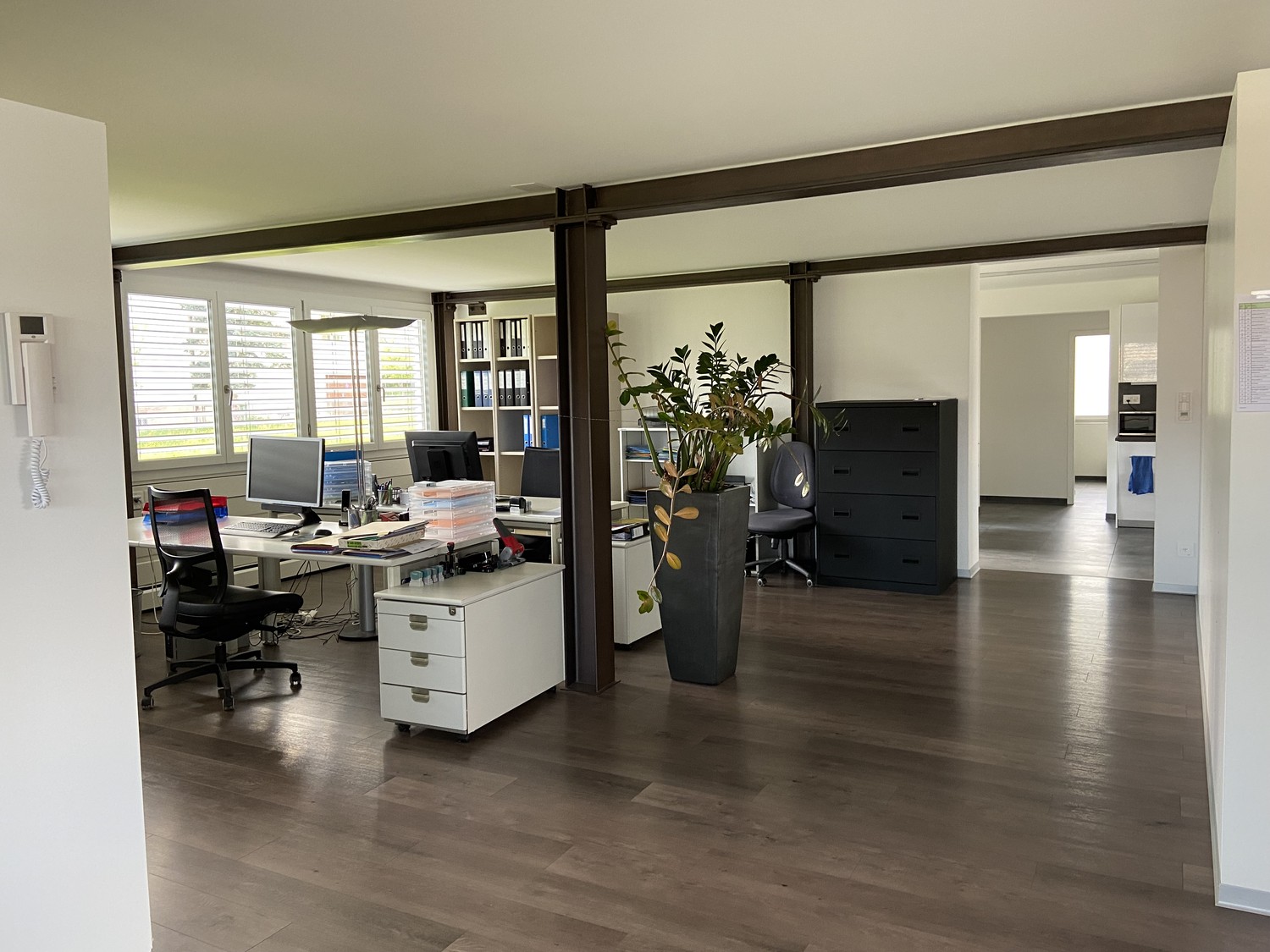 Die 168 m2 grosse Gewerbefläche im 1. Obergeschoss bietet ideale Voraussetzungen für ein modernes und effizientes Arbeiten. Die vollständig renovierten Räumlichkeiten überzeugen durch: