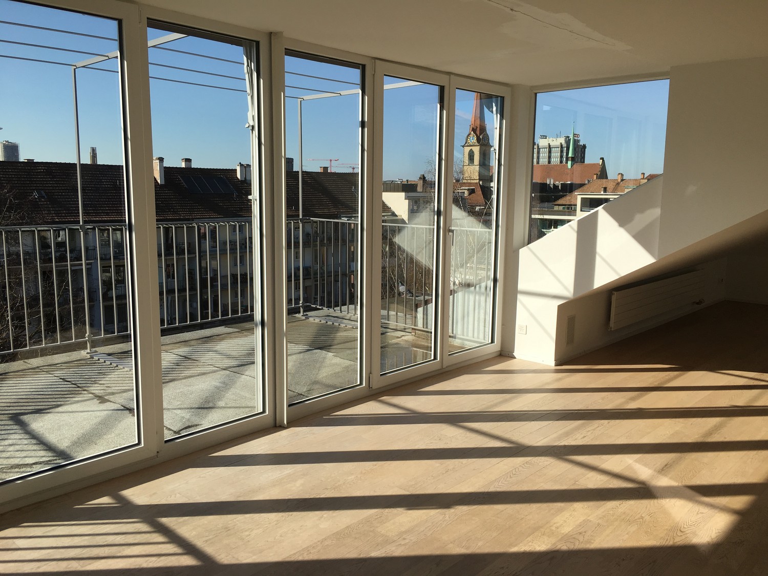 Wir vermieten eine helle, moderne Dachwohnung an schöner Lage im Gundeldinger-Quartier. Die Liegenschaft wurde 2008 komplett saniert. Im vergangenen Jahr wurde zudem die bisherige Heizung durch eine Luft-Wasser-Wärmepumpe ersetzt.