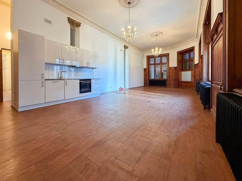 Aktuell wartet in einem komplett sanierten Mehrfamilienhaus mit sieben Parteien eine moderne 1-Zimmer-Loft-Wohnung mit rund 77 m² Wohnfläche im Erdgeschoss auf einen neuen Mieter. Das Haus liegt zentral und sonnig. Über den Eingangsbereich gelangen Sie in die moderne, grosszügige Loft-Wohnung mit hohen Decken, viel Tageslicht und einer Nasszelle mit eigener Waschmaschine.