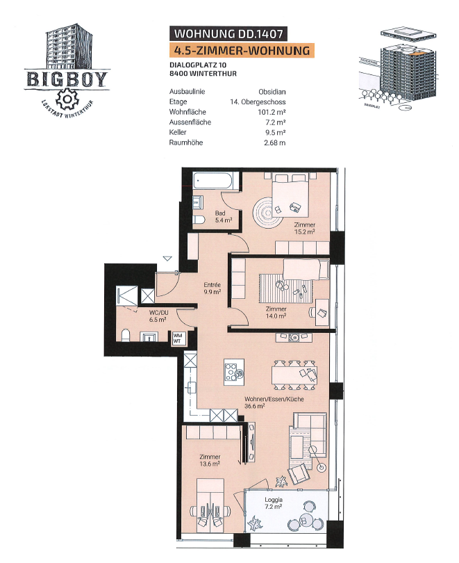 Wir vermieten per 1. Mai 2026 diese tolle Wohnung im BIGBOY.