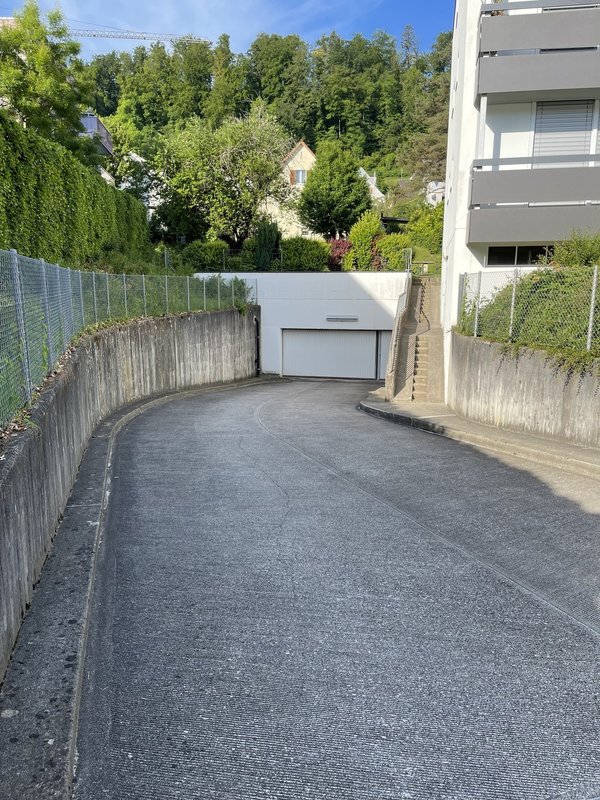 Der Parkplatz / Einstellplatz ist ca. 25qm gross und bietet Platz für ein Auto und ein Motorrad.