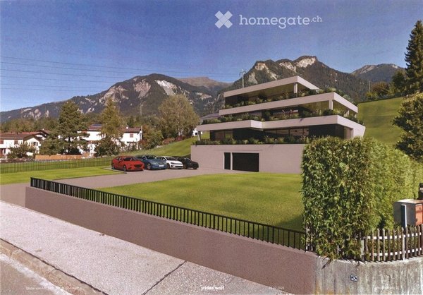 Im Erdgeschoss ist eine Einstellhalle mit 8 Parkplätzen. Zusätzlich verfügt jeder Mieter über einen eigenen Mieterkeller in Massivbauweise (gemauert mit Türe). Daneben sind die Technikräume (Elektro, Heizung) und privaten Kellerabteile der Hausbesitzer vorhanden.