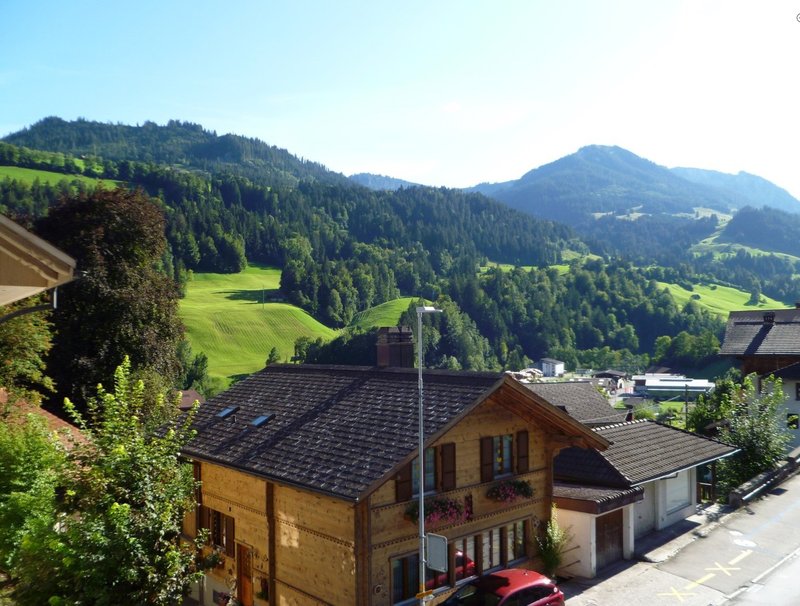 - grosser sonniger Balkon mit Blick auf den Niesen und das Dorfzentrum