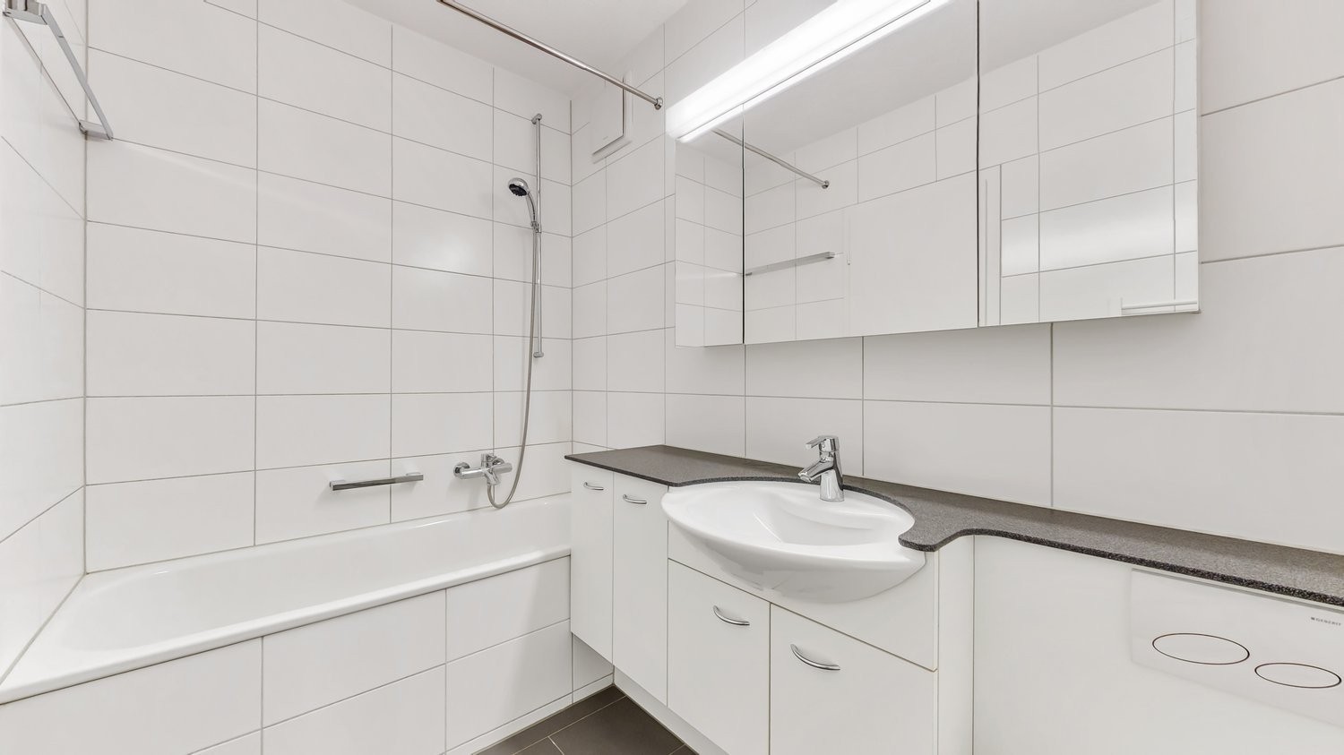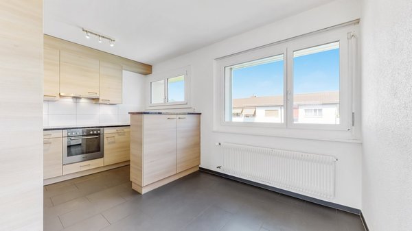 Die moderne Wohnung verfügt über eine Küche mit zeitgemässem Komfort. In der ganzen Wohnung sind Platten-, Parkett- und Laminatböden verlegt. Ein Balkon , Keller- und Estrichabteil gehören zur Wohnung.