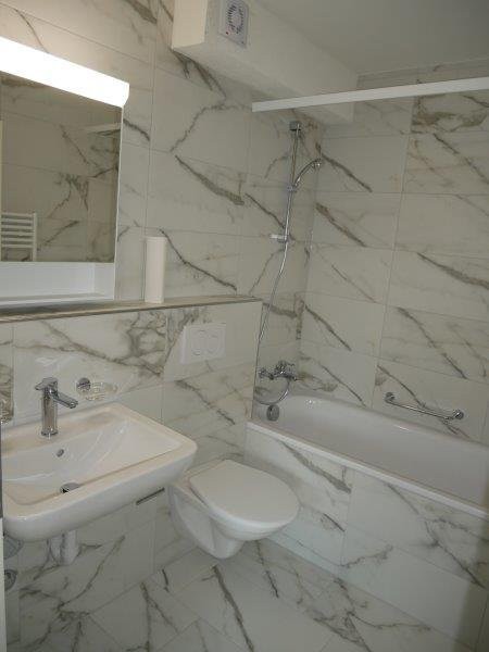 Neu renoviertes und elegantes Badezimmer mit Badewanne
