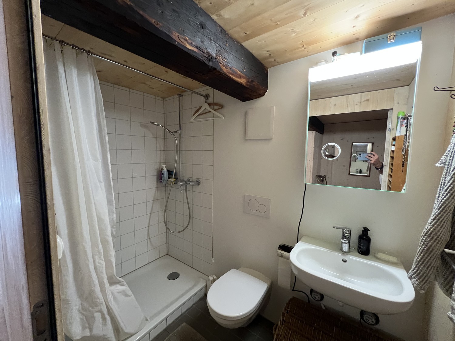 Das Badezimmer ist mit einer ebenerdigen, hindernisfreien Dusche ausgestattet.