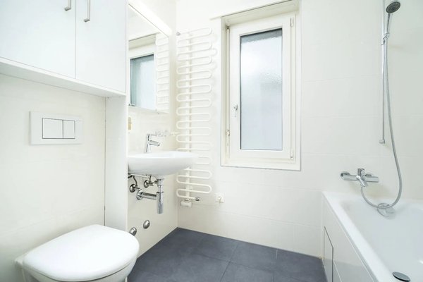 In den Wohn- und Schlafräumen ist ein Parkettboden verlegt. Die Küche und Nasszellen sind mit pflegeleichten Plattenböden ausgestattet.