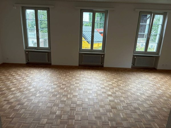 Entdecken Sie diese wunderschöne 4.5-Zimmer-Wohnung im Erdgeschoss eines traditionellen Hauses mit grünen Fensterläden an der Dorfstrasse in Windisch. Die Wohnung wurde 2025 renoviert und bietet auf 95 m² Wohnfläche modernen Komfort in historischem Ambiente.
